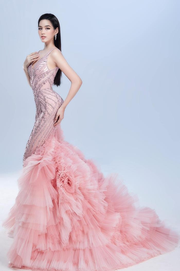 Trang phục dạ hội cho đêm Chung kết sắp tới đây của người đẹp cũng mang gam hồng đẹp lộng lẫy.