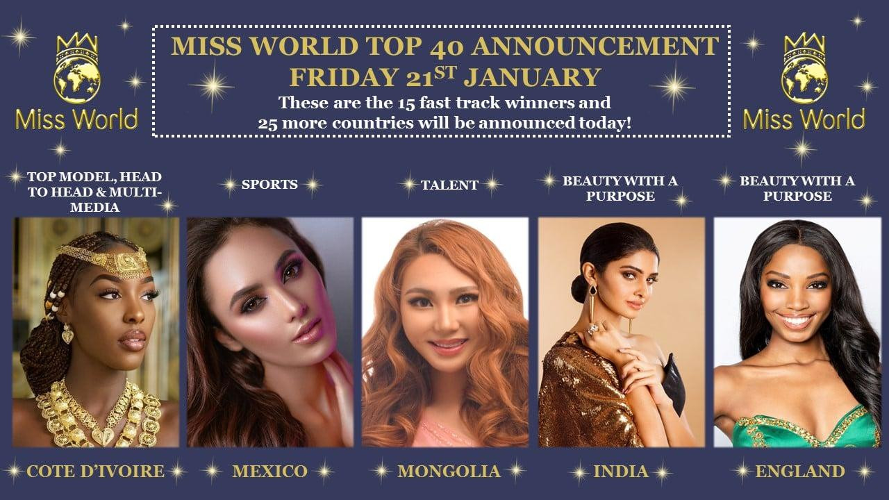 BTC Miss World cũng cho biết top 40 sẽ chính thức quay trở lại San Juan, Puerto Rico vào ngày 12/3 tới để chuẩn bị cho đêm chung kết. Các thí sinh không lọt top dự kiến sẽ được BTC mời tham gia đêm chung kết theo hình thức trực tuyến.