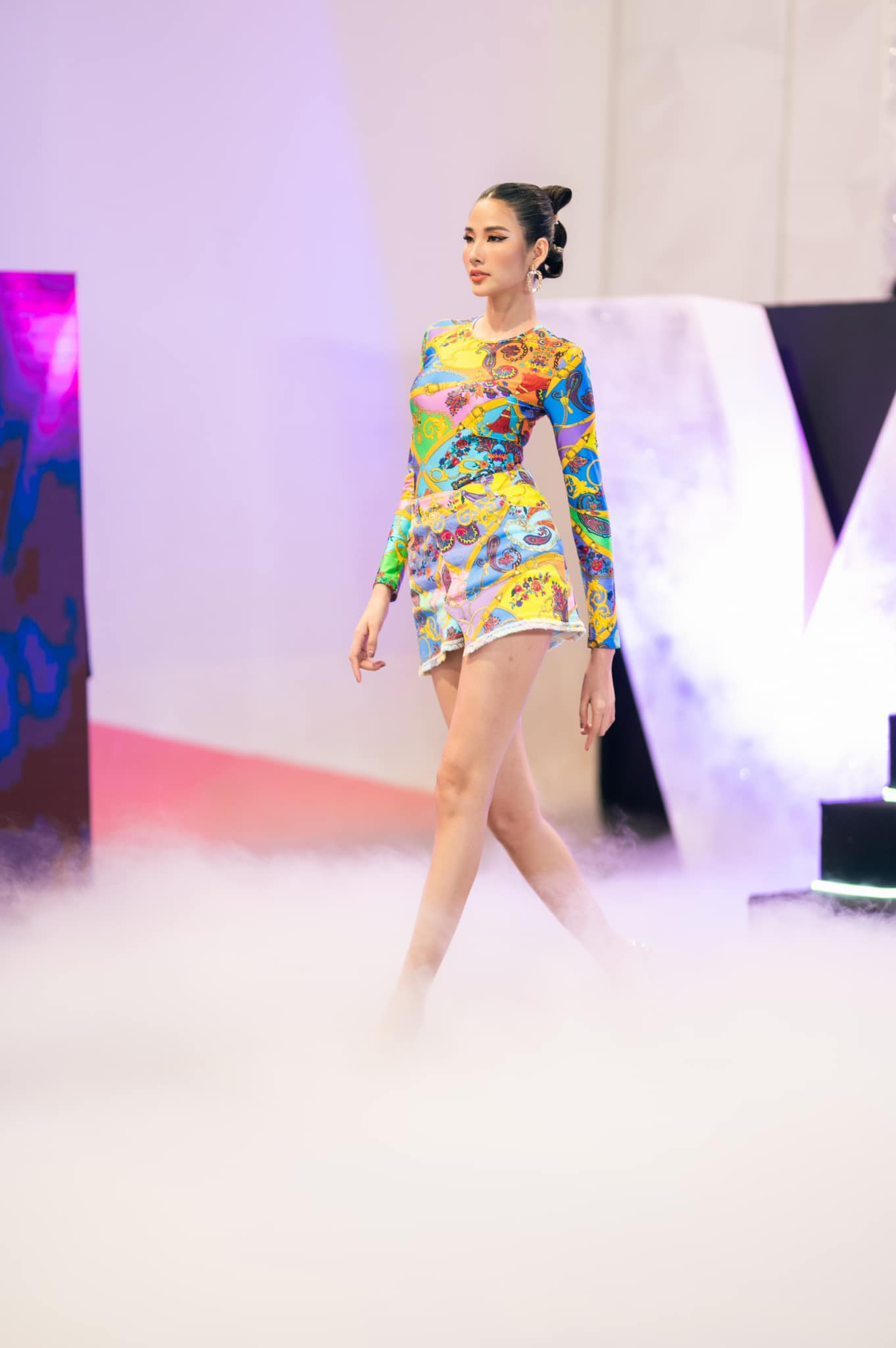 Người đẹp xứ Thanh khoe đôi chân siêu dài khi thị phạm cho các thí sinh tại chương trình "Đại sứ Hoàn mỹ".