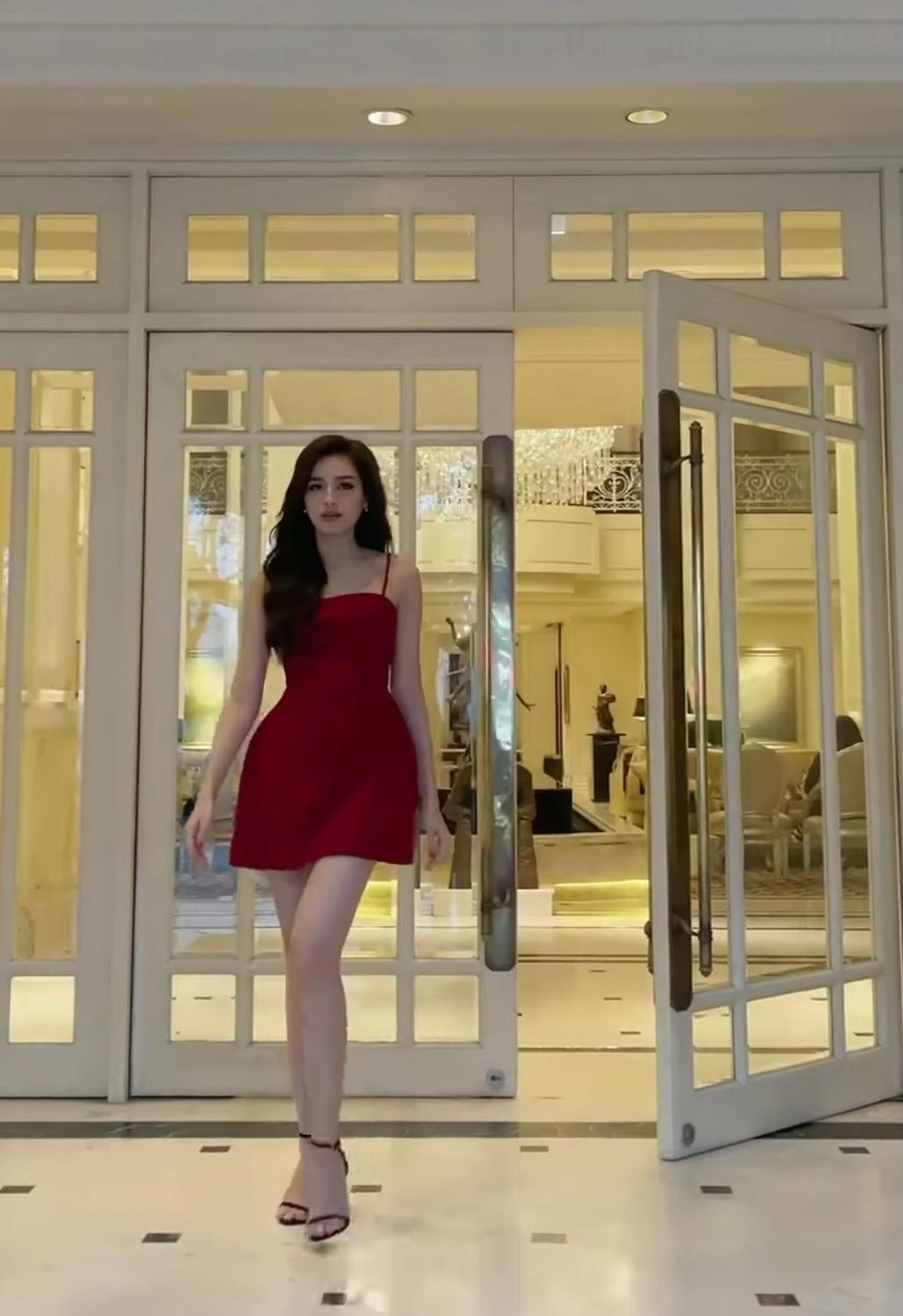 | Hoa hậu Đỗ Thị Hà khoe chân dài 1m1 thẳng tắp. |