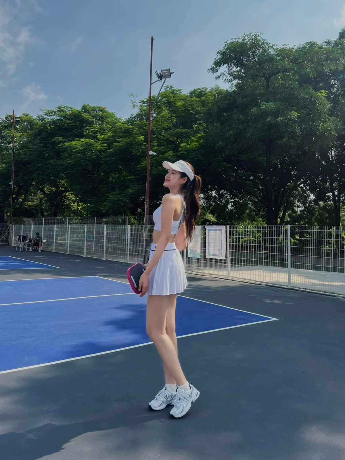 Hoa hậu Đỗ Thị Hà cũng là một fan của pickleball, nàng hậu xuất hiện tại sân tập khá đều, khoe khéo hình thể “vạn người mê” trong set đồ thể thao.