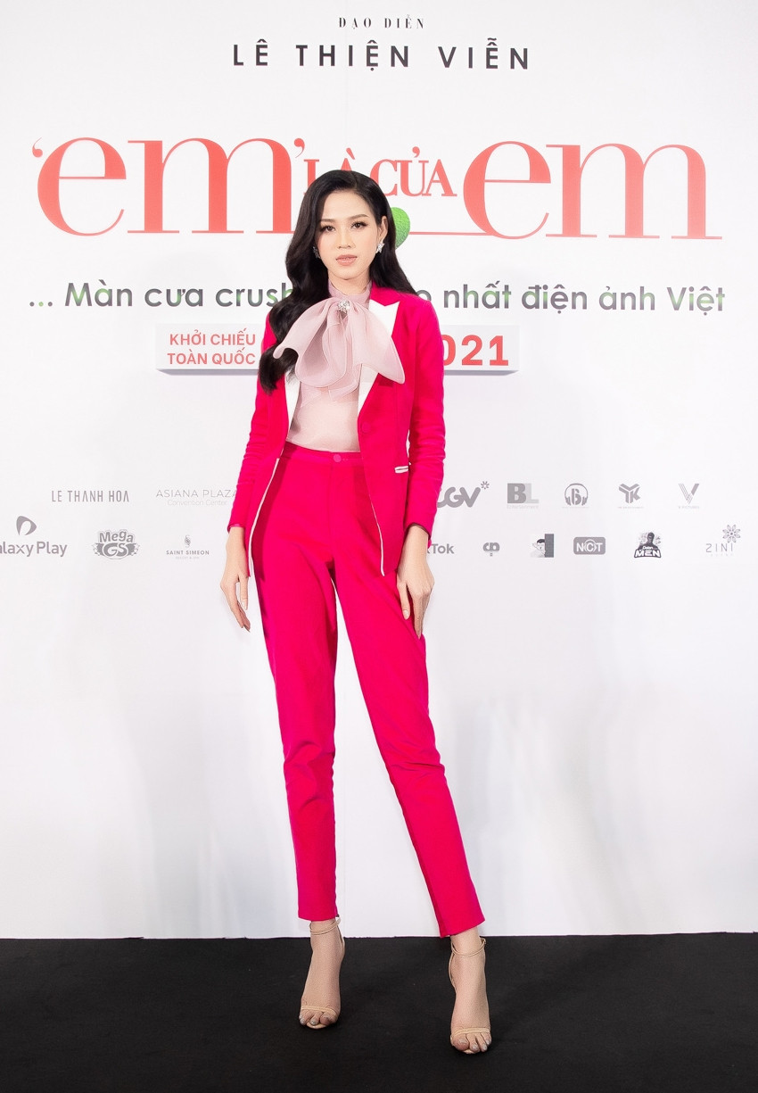 Hoa hậu Đỗ Thị Hà chọn phong cách thanh lịch, cô khoe nhan sắc ngọt ngào trong bộ suit với gam màu nổi bật.