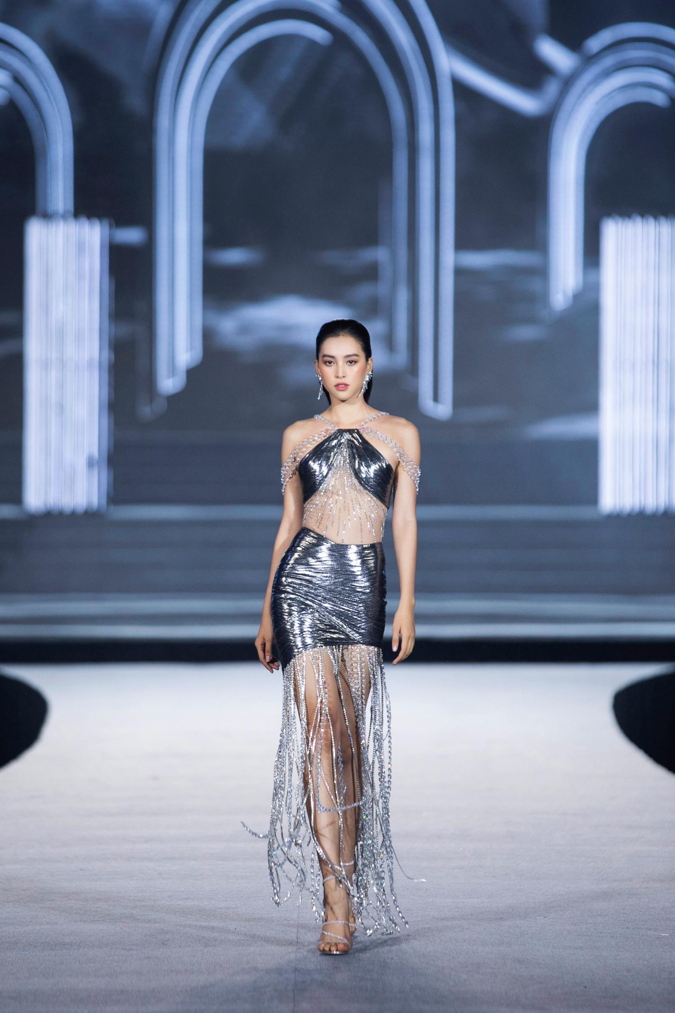 | Cả hai đã có màn xuất hiện đầy ma mị trong không gian vũ trụ. Trong trang phục ánh bạc, phần catwalk song hành của Minh Tú và Tiểu Vy khiến người hâm mộ không khỏi “hoài niệm” về lần hợp tác trước của cả hai nàng hậu. |