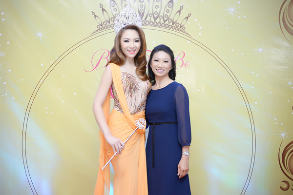 Nhan sắc 21 tuổi rạng ngời bên bà Rose Chung, nhà sáng lập Miss Asian America vào năm 1985.