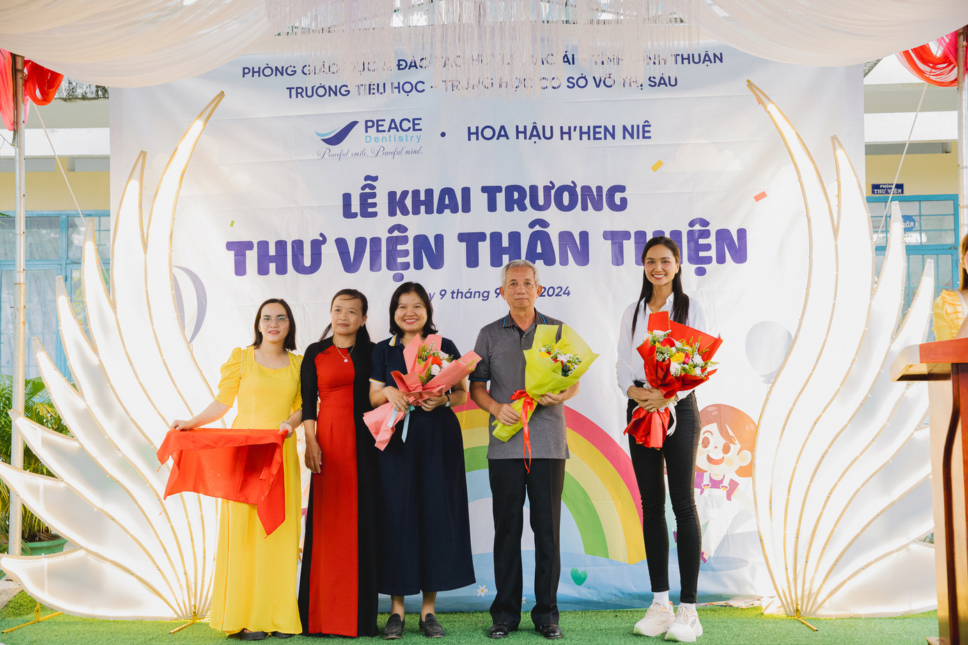 Mới đây, Hoa hậu H’Hen Niê đã đến Ninh Thuận để tổ chức trao tặng 2 thư viện thân thiện tại trường Tiểu học Mỹ Nhơn (huyện Thuận Bắc, tỉnh Ninh Thuận) và trường Tiểu học - THCS Võ Thị Sáu (huyện Bác Ái, tỉnh Ninh Thuận). Chuyến trao tặng lần này nhận được sự đóng góp từ các vận động viên tham gia giải chạy Peace Marathon Open 2024 được tổ chức vào cuối tháng 6 năm nay.