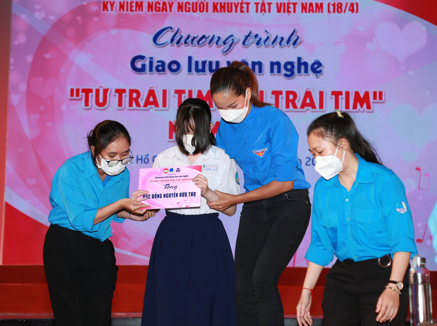 Dịp này, Hội LHTN Việt Nam TPHCM đã trao tặng 24 suất học bổng cho học sinh, sinh viên khuyết tật có hoàn cảnh khó khăn đang theo học tại các cơ sở giáo dục phổ thông, chuyên biệt trên địa bàn thành phố.