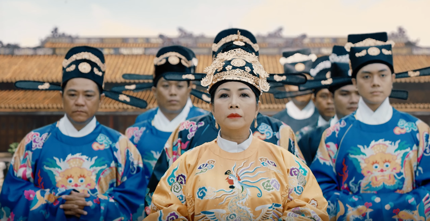 Không thể không nhắc đến sự xuất hiện bất ngờ của Hoa hậu Hoàn vũ Khánh Vân ngay trong những giây phút cuối cùng. Người đẹp tay cầm một chiếc trâm, dáng mặt đầy căm phẫn nhìn về phía Hoàng cung, sau đó quay lưng đi ra khỏi cổng thành.