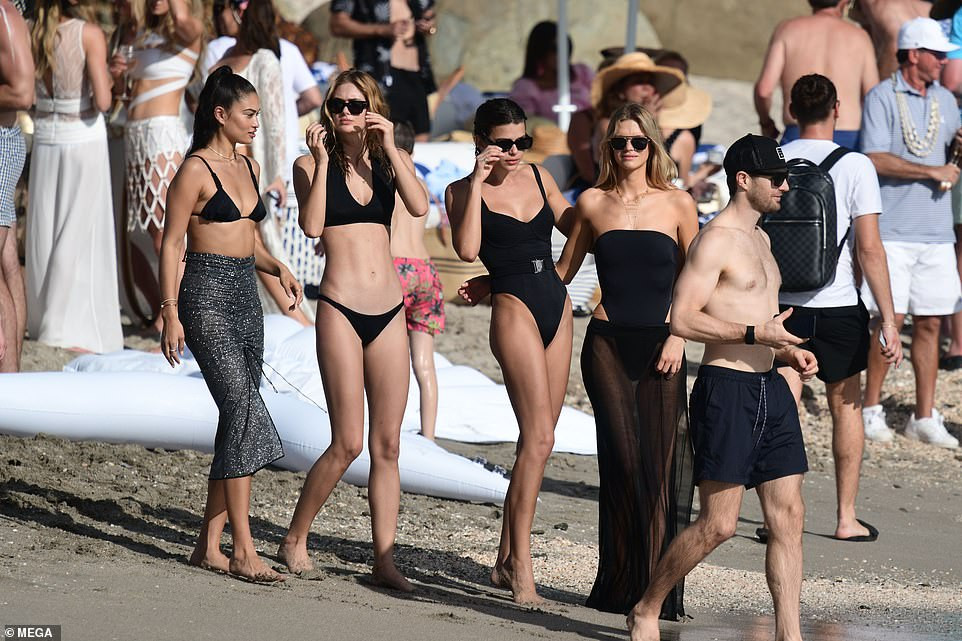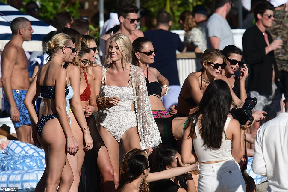 Cặp sao mời các cô bạn gái thân thiết là cả dàn mỹ nhân chân dài đến chung vui tạo nên không khí vô cùng náo nhiệt trên biển.
