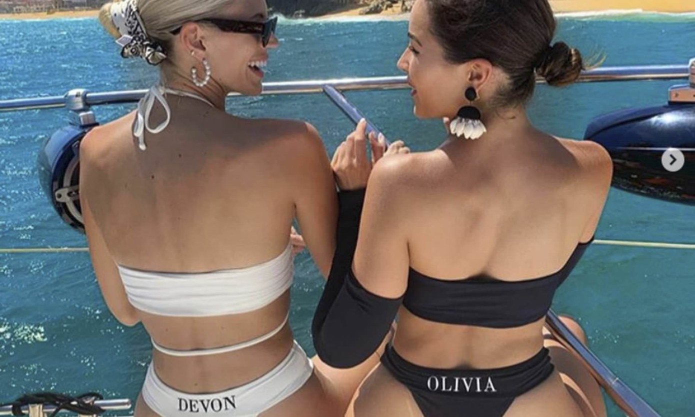 Cô dâu Devon Windsor và bạn gái thân thiết Olivia Culpo thậm chí còn diện cả bikini đôi in tên cá nhân.