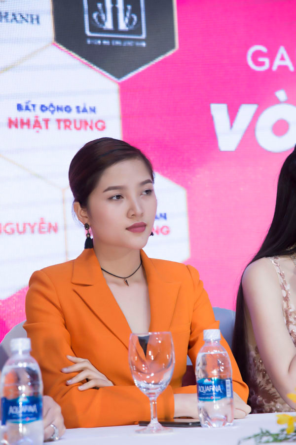 Xuất hiện tại buổi họp báo trong trang phục màu cam lộng lẫy của nhà thiết kế Lê Thanh Hòa, sắc đẹp cùng phong cách thời trang sành điệu luôn khiến Hoa hậu Hoàng Thủy trở thành tâm điểm của ống kính truyền thông