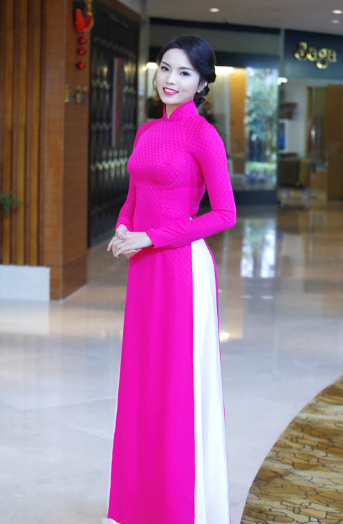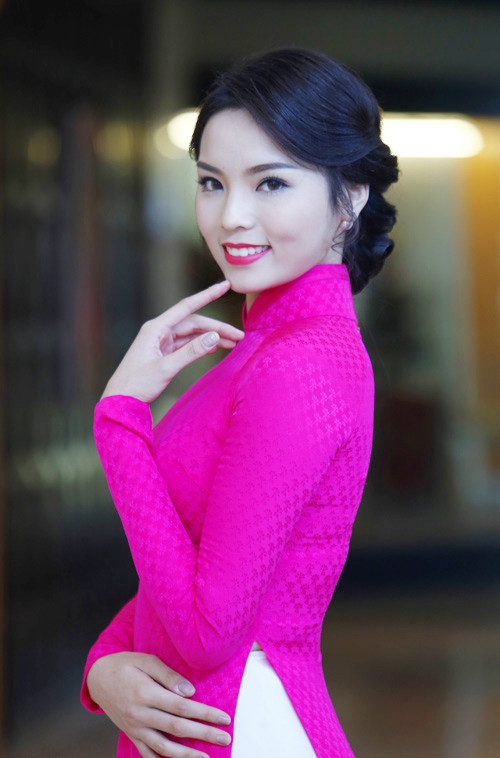 TPO - Hoa hậu Việt Nam 2014 Nguyễn Cao Kỳ Duyên mặc áo dài hồng rực, khoe nét đẹp duyên dáng và cuốn hút trong bộ ảnh mới.