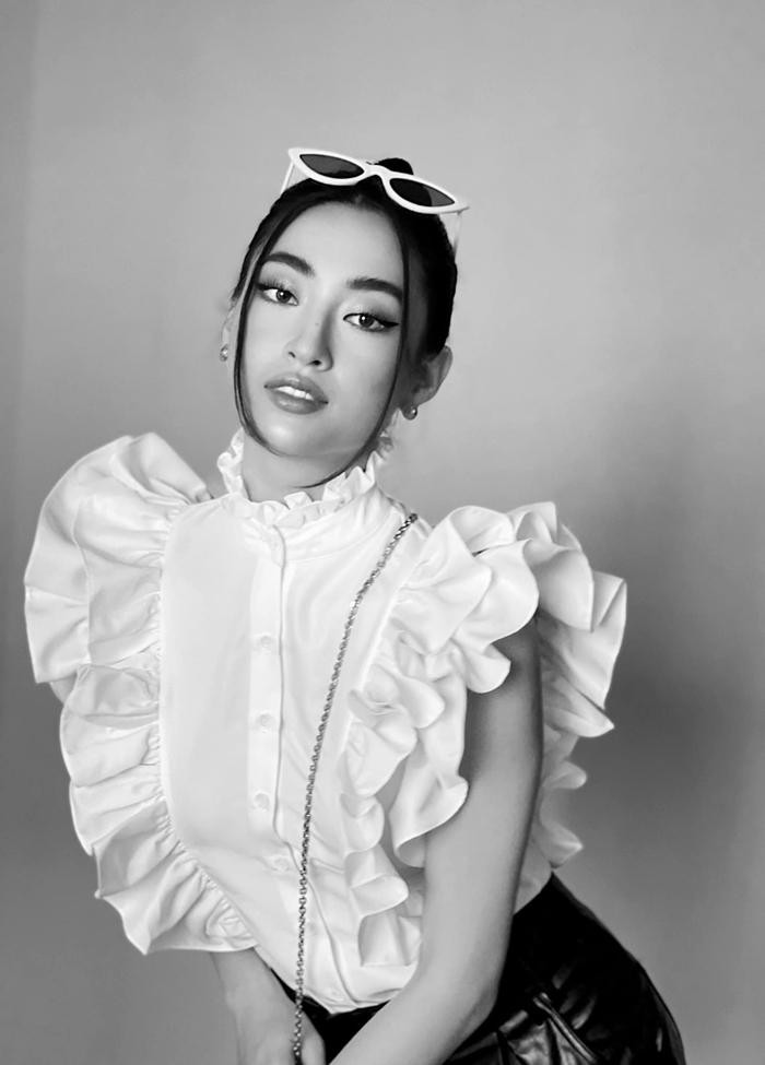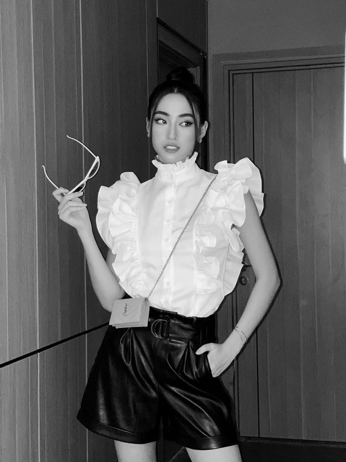 Chọn trang phục với hai gam màu kinh điển là đen và trắng, Miss World Vietnam 2019 khoe thần thái sang chảnh đúng chuẩn high-fashion.