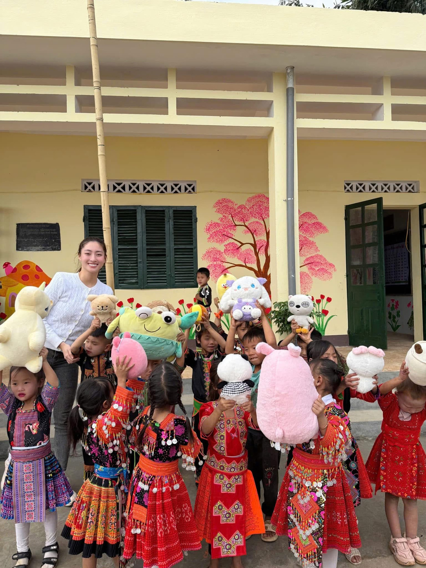 Tại điểm trường này, 'nàng Hậu' hỗ trợ sơn sửa lại trường và xây dựng nhà vệ sinh mới nhằm cải thiện điều kiện sinh hoạt cơ bản cho học sinh và giáo viên. Các em nhỏ cũng nhận được những phần quà học tập như tập vở, bút viết, sáp màu và gấu bông từ Lương Thùy Linh. Chuyến ghé thăm này không chỉ mang đến niềm vui mà còn là nguồn động lực to lớn giúp các em vững tin hơn trong hành trình học tập.