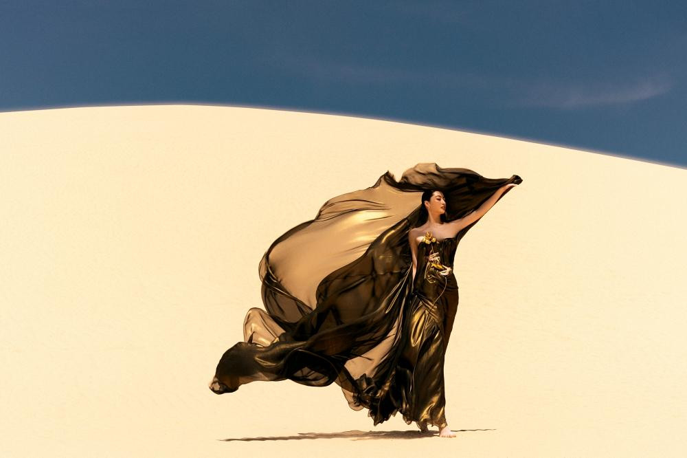 Sau đoạn trailer vũ điệu trên sa mạc của Hoa hậu Lương Thùy Linh, NTK Lê Thanh Hòa tiếp tục tung ra trọn bộ ảnh thời trang Sa Vũ vô cùng ấn tượng.