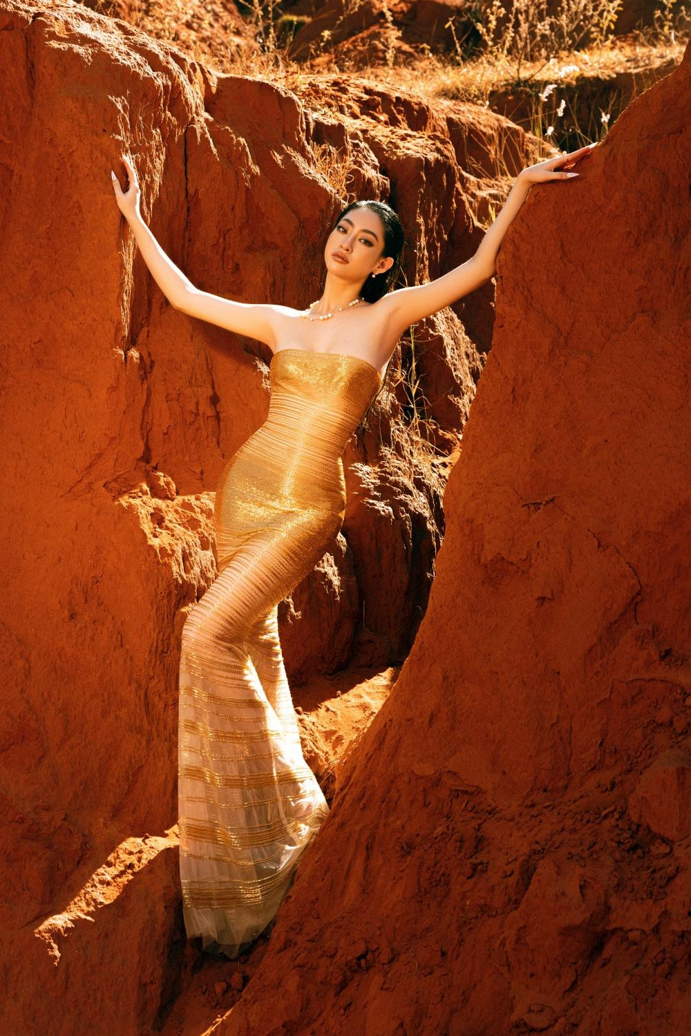 Hoa hậu Lương Thùy Linh phải mang giày cao gót, mặc váy áo cầu cố gắng kỳ di chuyển trên cát. Gió biển và cát liên tục thổi vào mặt vừa ảnh hưởng đến lớp trang điểm vừa khiến người mẫu rất mau mất sức. Dù mặc trang phục hở vai, váy ngắn phơi nắng liên tục suốt nhiều giờ, Lương Thùy Linh vẫn có màn thể hiện đầy ấn tượng.