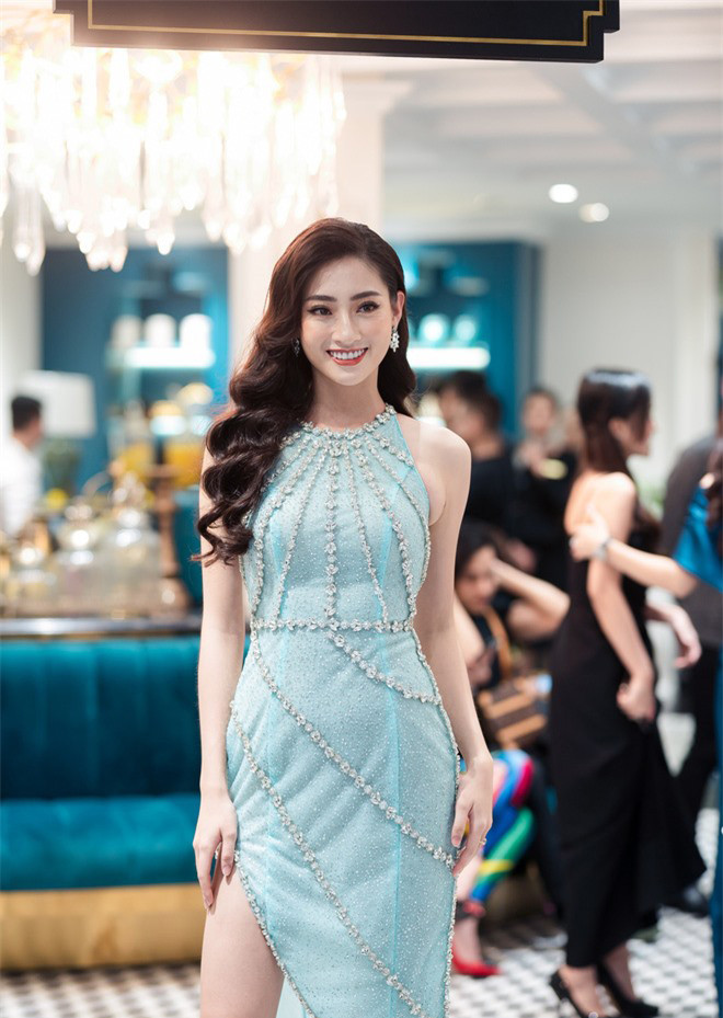 Hoa hậu Lương Thuỳ Linh kiêu sa và gợi cảm với bộ đầm xẻ đùi quyến rũ.