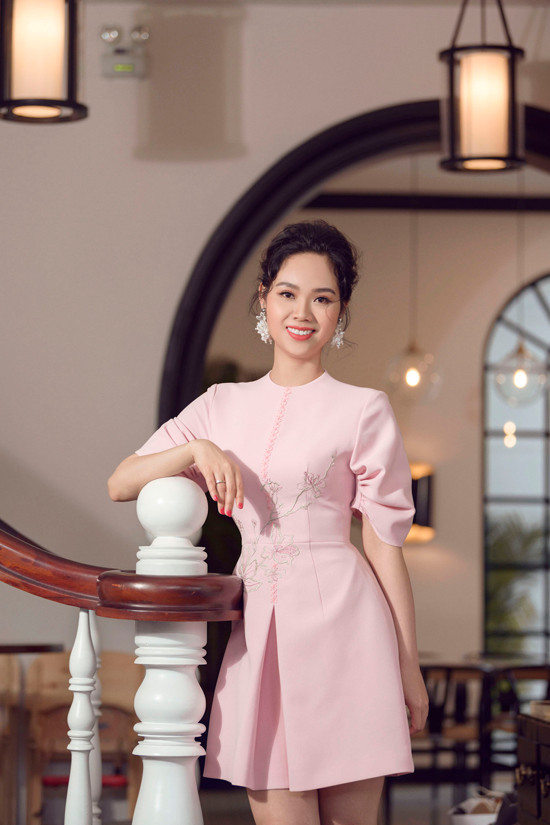 Hoa hậu khoác lên loạt đầm mang đặc trưng ngôn ngữ thiết kế của Lê Thanh Hoà, thanh lịch và nữ tính.