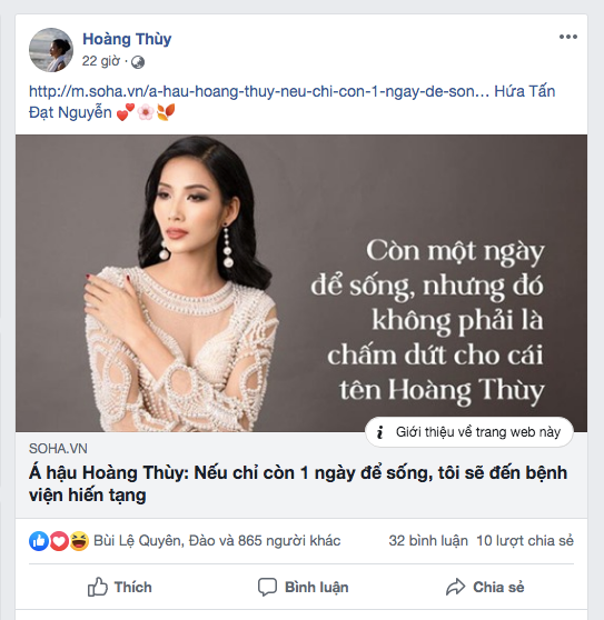 Á hậu Hoàng Thuỳ chia sẻ về mục đích cao cả hướng về cộng đồng mang đầy tính nhân văn trên trang cá nhân.