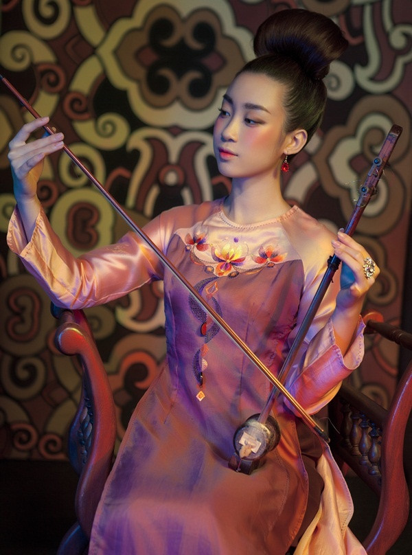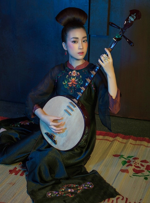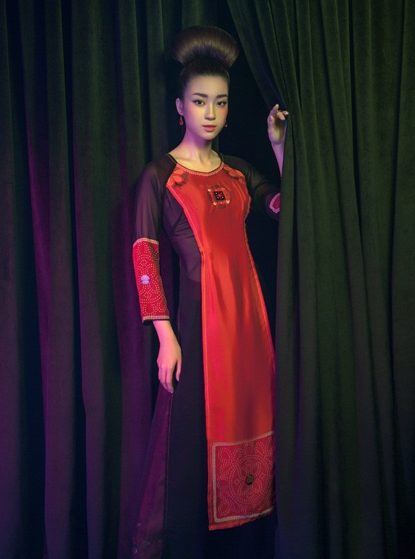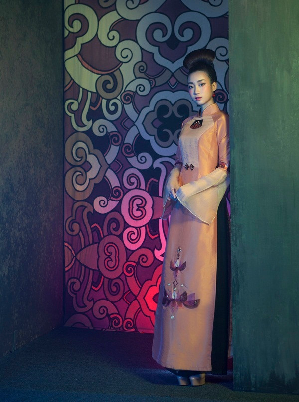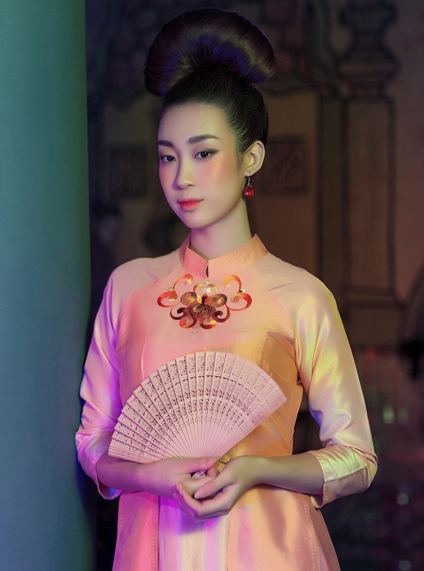 Hoa hậu Mỹ Linh diện áo dài gắn sơn mài