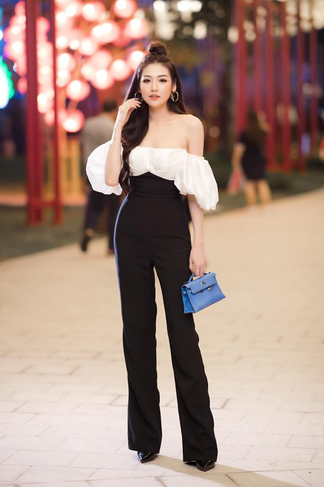Á hậu Tú Anh khoe vai trần xinh đẹp, gợi cảm.