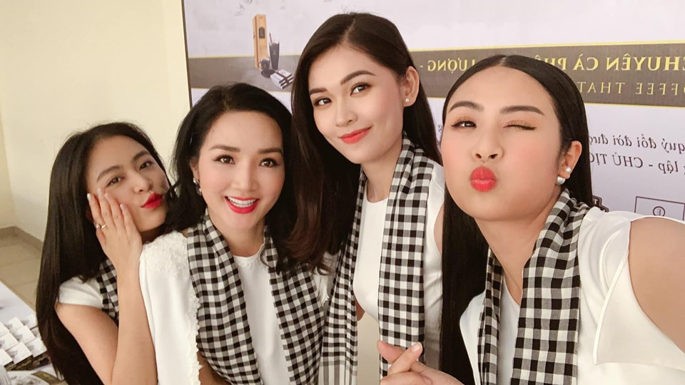 Á hậu Thuỳ Dung, Hoa hậu Ngọc Hân hội ngộ Hoa hậu Đền Hùng Giáng My và ca sĩ Hoàng Thuỳ Linh trong chương trình giao lưu và tặng sách tại ĐH Tiền Giang.