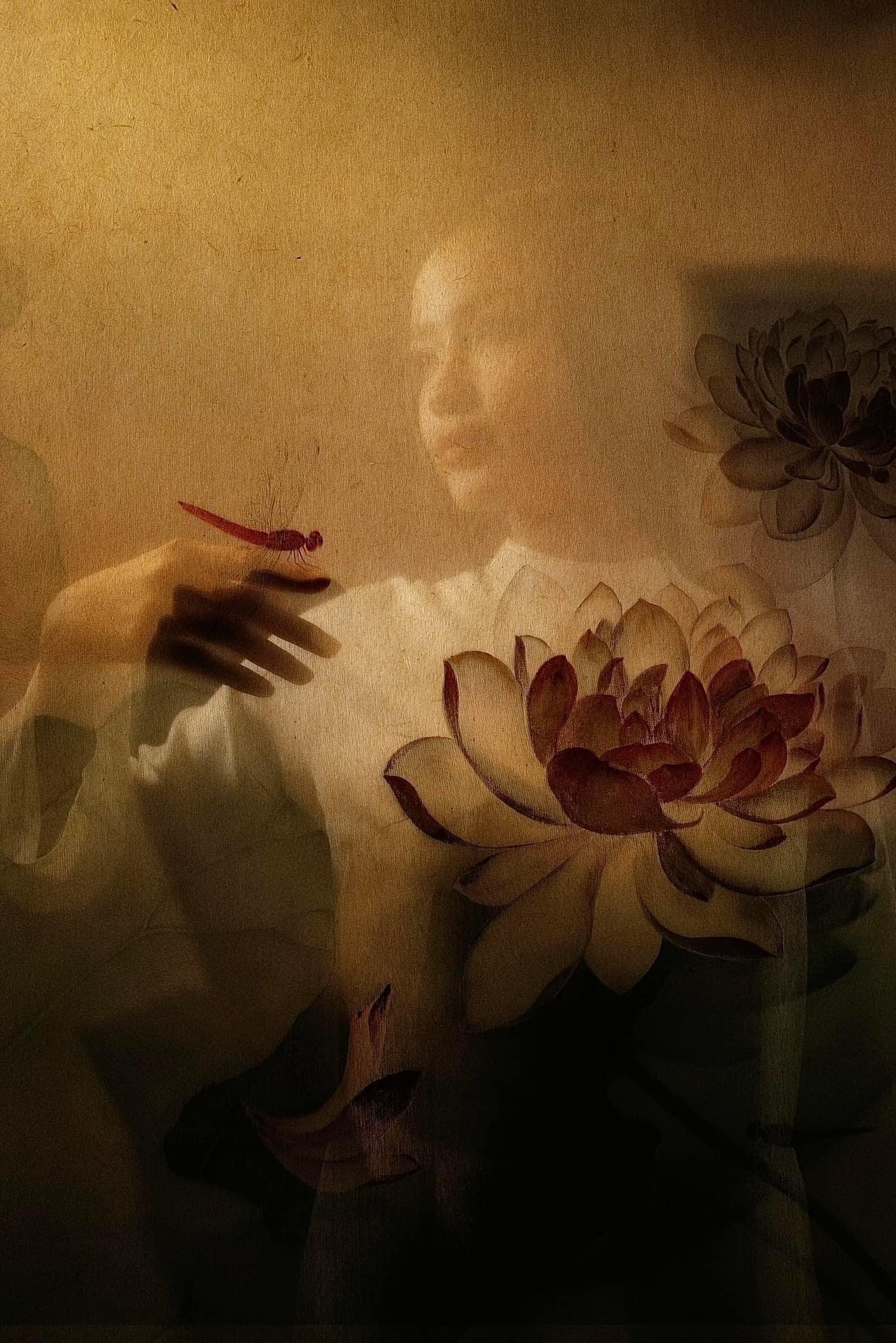 Hình ảnh Hoa hậu Ngọc Châu trên tạp chí Asian Premier Magazine xuất bản tại Mỹ đã gửi gắm tâm hồn Việt, tà áo dài truyền thống qua chất liệu lụa và kỹ thuật vẽ thủ công qua đôi bàn tay của NTK - nghệ nhân Trung Đinh.