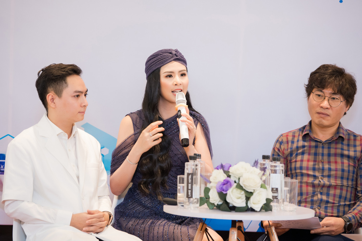 Với diện mạo sexy, Hoa hậu nhận được nhiều lời khen ngợi của các vị khách trong chương trình.