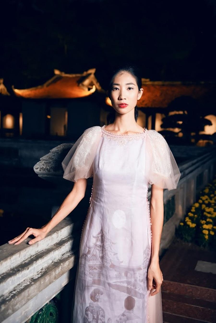 Áo dài của Hà Duy bay bổng, lãng mạn, phù hợp với những cô gái điệu đà. Một số hình ảnh quen thuộc của đất nước mặt trời mọc được Hà Duy đưa lên tà áo dài bằng công nghệ in hiện đại như bóng dáng nàng Geisha, núi Phú Sĩ, cổng trời Torri, lâu đài Osaka…