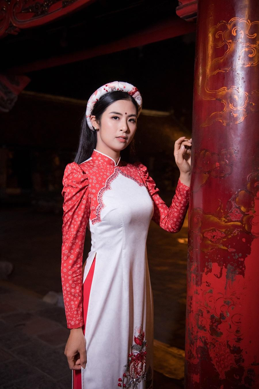 Với Ngọc Hân, cô lấy cảm hứng cho bộ sưu tập từ Ấn Độ, quốc gia cô từng có dịp ghé thăm và tham gia một số sự kiện văn hoá tại đây. Hoa hậu sáng tạo những mẫu áo dài ton sur ton về màu sắc, kiểu dáng dành cho mẹ và bé mang tính ứng dụng cao.