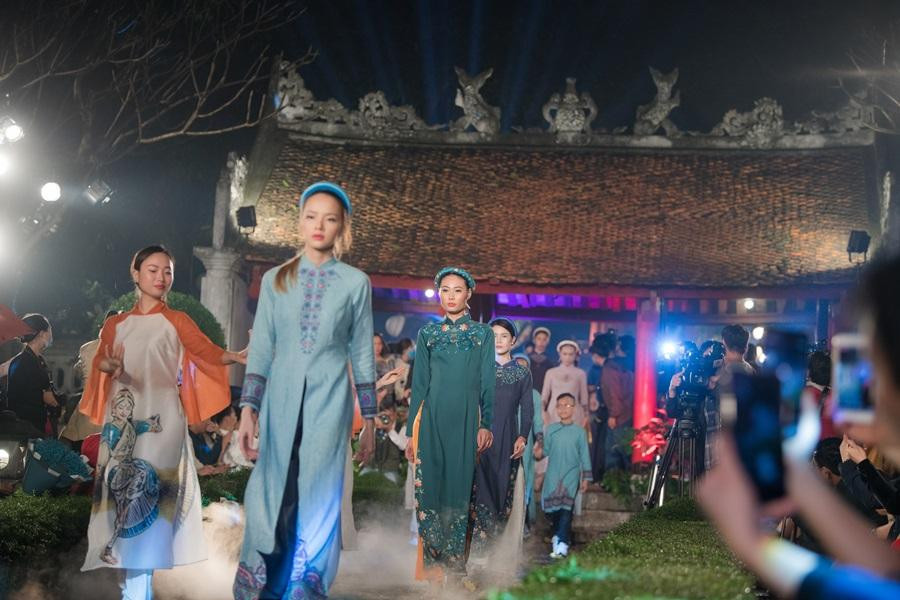 Nếu Ngọc Hân lấy cảm hứng từ Ấn Độ thì NTK Hà Duy lại đưa văn hoá Nhật Bản vào bộ sưu tập áo dài giới thiệu trong chương trình tối qua. Anh sử dụng chất liệu đũi, kết hợp cùng lưới, ren, cùng kỹ thuật đính kết thủ công điêu luyện để tạo nên sự khác biệt.