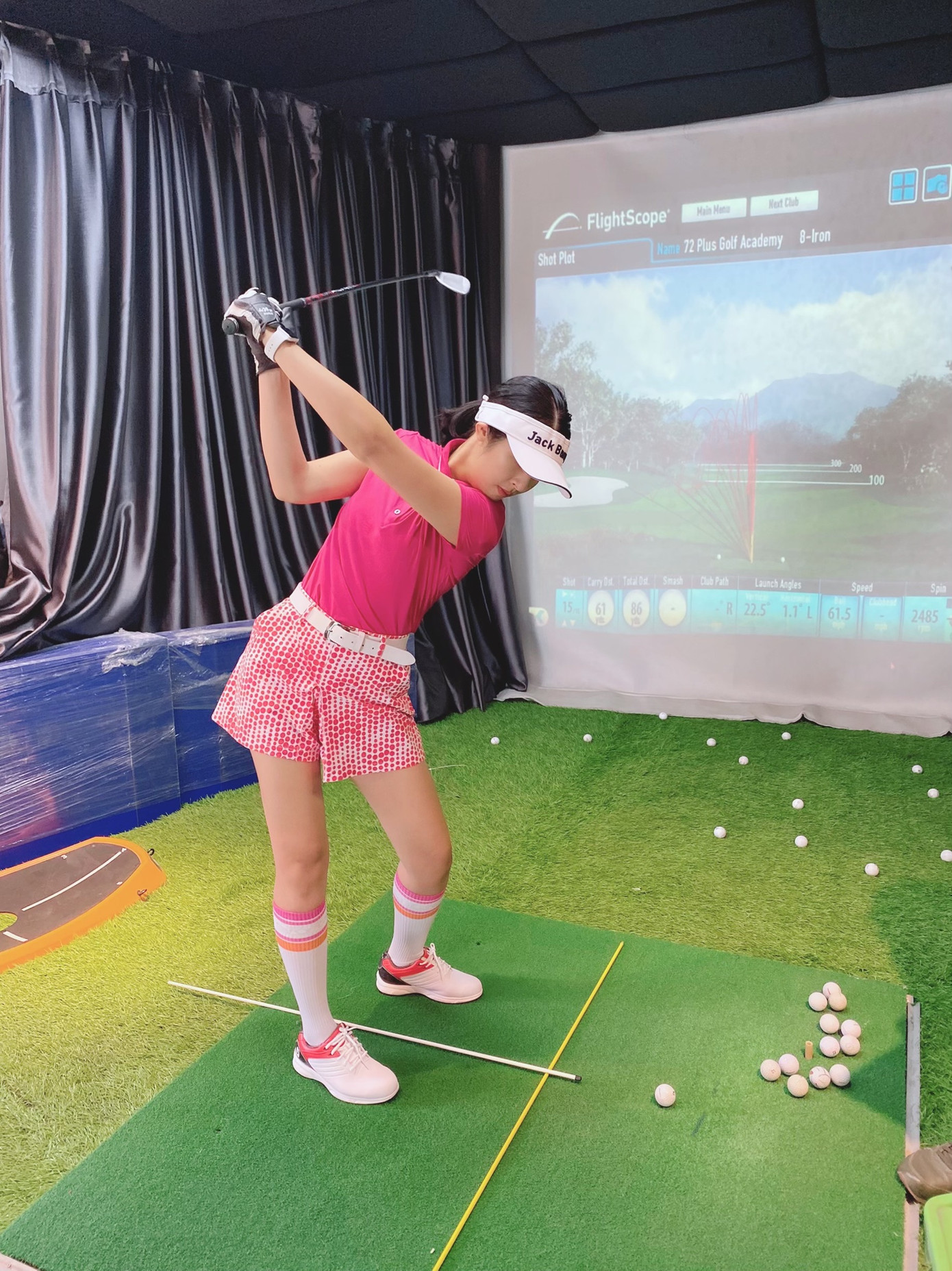 Thời trang trên sân golf của Ngọc Hân rất bắt mắt, vừa dễ thương nhưng không ké phần cá tính.