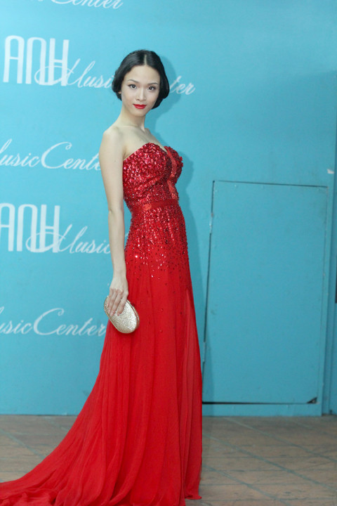 | Hoa hậu Trương Hồ Phương Nga lộng lẫy, gợi cảm với đầm đỏ lấp lánh. |