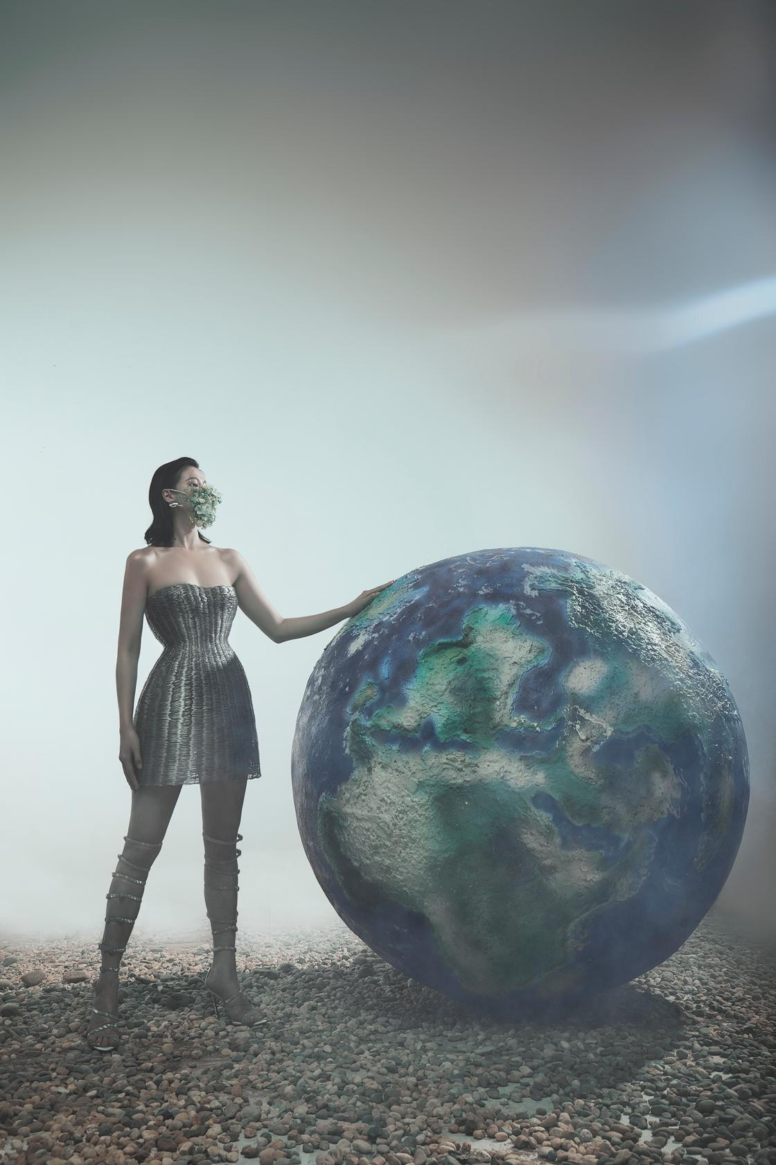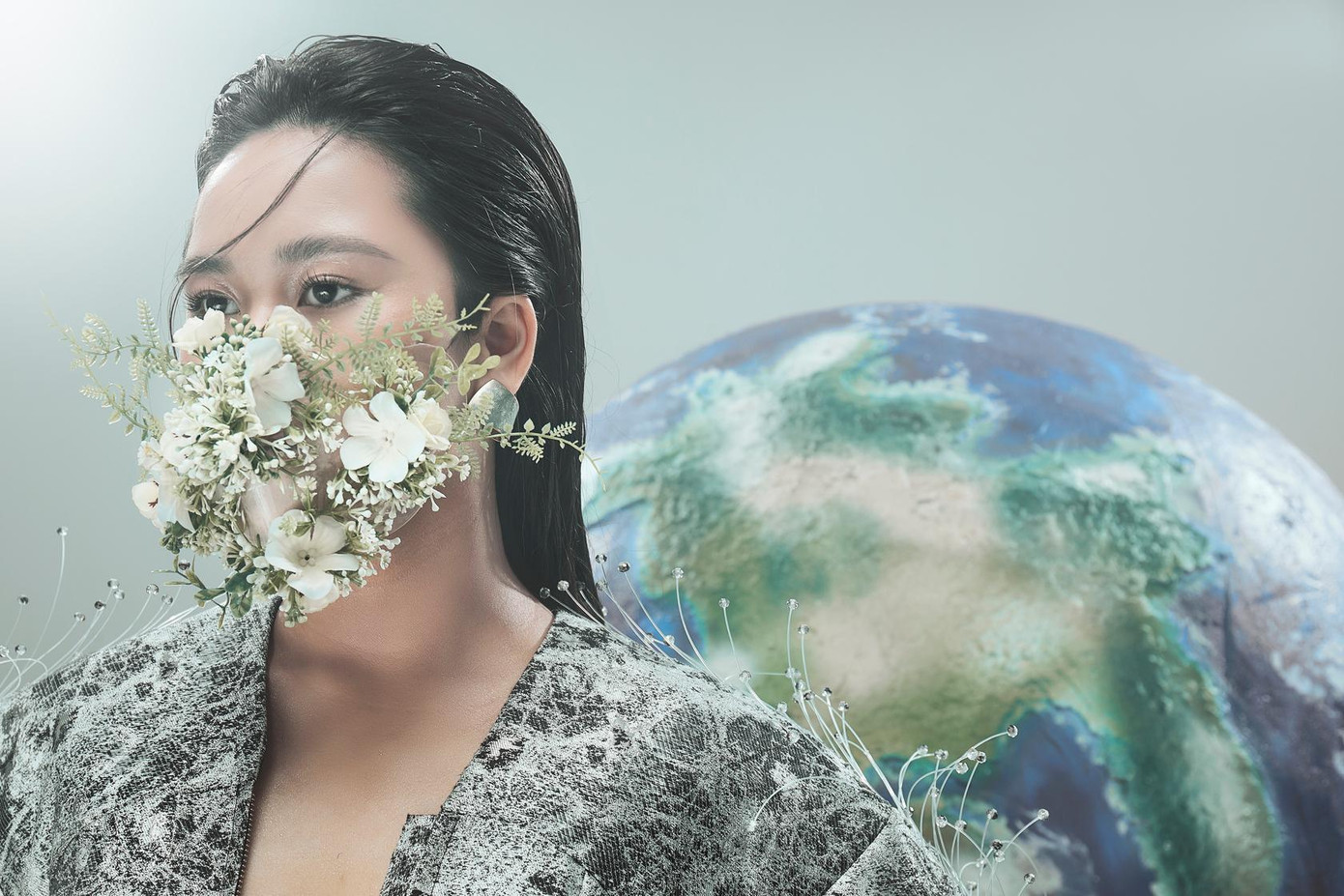 Concept đầu tiên là hình ảnh Trái Đất có màu xanh cây lá và màu xanh đại dương bao bọc, không khí trong lành, yên bình. Hiện tại, Trái Đất đang phải đối mặt với tình trạng ô nhiễm không khí, nguồn nước do quá trình đô thị hoá, cùng với việc chặt phá rừng và khai thác khoáng sản quá mức. Vậy nên, hai người đẹp chọn đeo những chiếc khẩu trang nở hoa lá màu xanh nhằm thể hiện mong ước con người sẽ thay đổi nhận thức để góp phần bảo vệ thiên nhiên.