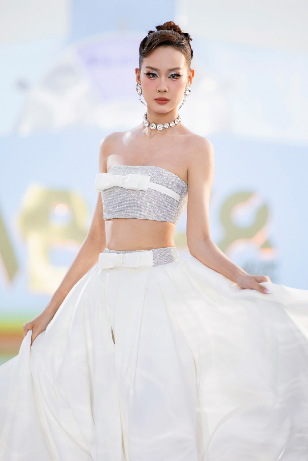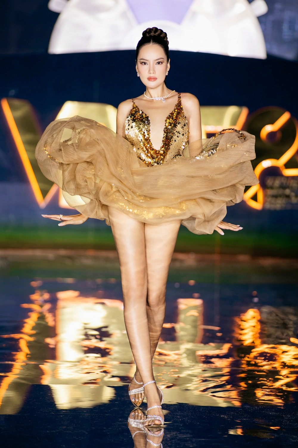 Hoa hậu Lê Nguyễn Bảo Ngọc là vedette với những bước catwalk mạnh mẽ, khoe vẻ đẹp hiện đại và đôi chân dài 1m23.