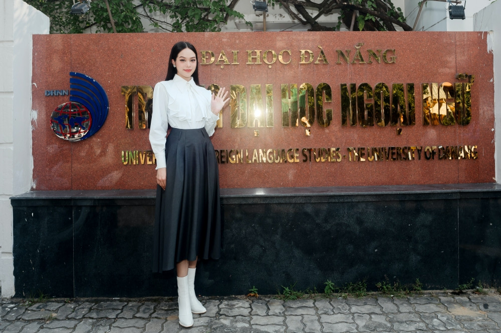 Sau quãng thời gian được nhà trường tạo điều kiện bảo lưu kết quả học để tham dự Hoa hậu Việt Nam 2022. Hoa hậu Thanh Thủy đã có dịp trở về trường Đại học Ngoại ngữ - Đại học Đà Nẵng cùng đạo diễn Hoàng Nhật Nam để gặp gỡ, cảm ơn BGH nhà trường.