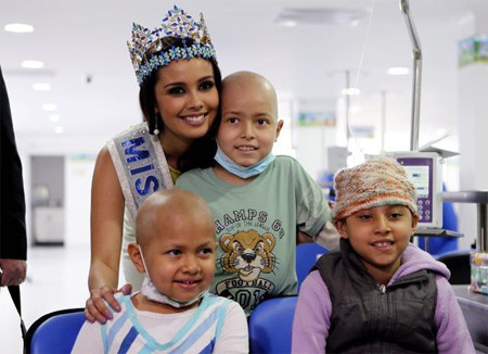 Người đẹp tới thăm các em nhỏ bị ốm trong một bệnh viện
