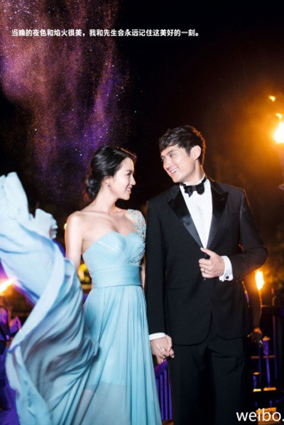 | Váy cưới Trương Tử Lâm chọn là của thương hiệu thời trang Tây Ban Nha La Sposa, cô nói: “Vì là đám cưới ở biển, chiếc váy nhẹ nhàng bay bổng này rất phù hợp”. |