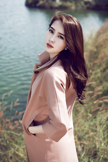 Trong trang phục của Lê Thanh Hòa, Hoa hậu Việt Nam 2012 thể hiện tâm trạng đầy ưu tư giữa khung cảnh thiên nhiên thơ mộng.