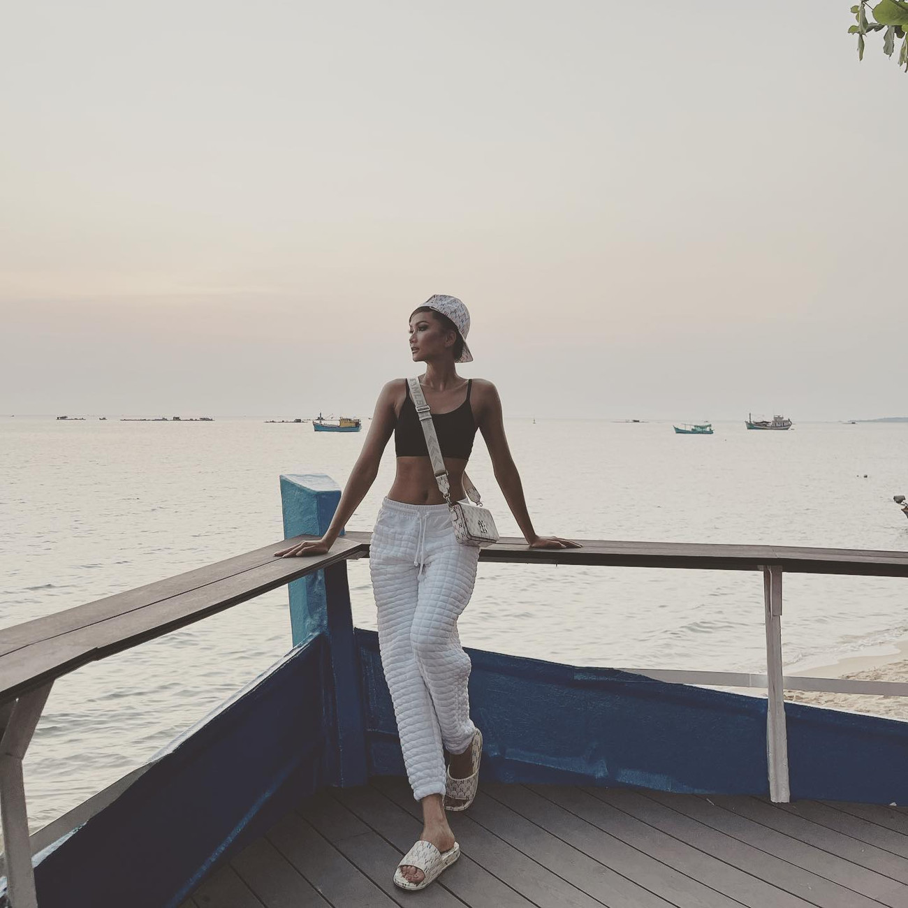 Á hậu Lệ Hằng khoe dáng xinh đẹp trên biển Phú Quốc.
