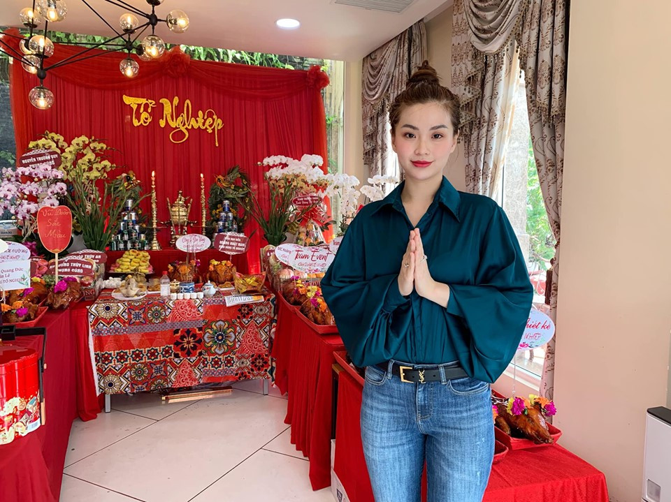 Á hậu Thuý An cũng tham dự lễ cúng tổ nghề sân khấu.