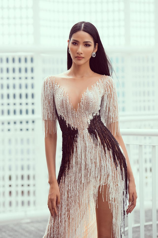 Hoàng Thuỳ khoe vòng một nóng bỏng với thiết kế váy dạ hội tua rua lạ mắt.