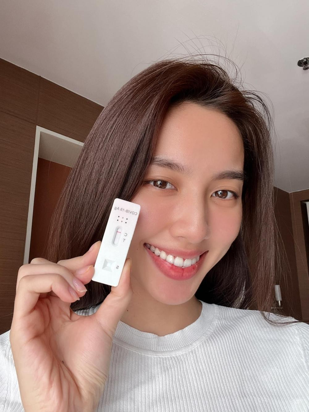 Mới đây, tối muộn ngày 15/3, tức là sau 7 ngày dương tính với SARS-CoV-2, Hoa hậu Thùy Tiên đã vui mừng khoe trên trang cá nhân rằng mình đã khỏi bệnh. Người đẹp khiến người hâm mộ cười ngất vì chụp nguyên một bộ hình 7 tấm với que test nhanh, hiển thị 1 vạch đỏ.