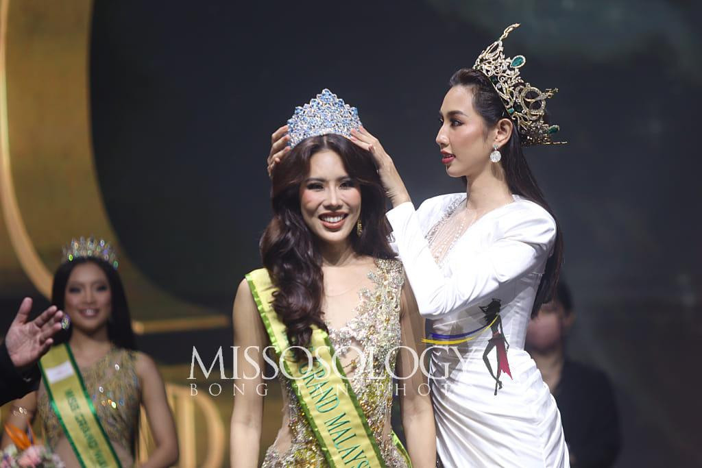 | Thuỳ Tiên trao vương miện cho tân Miss Grand Malaysia 2022. |