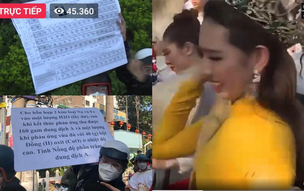 Trước đó, trong lễ diễu hành đường phố để chào người hâm mộ, Hoa hậu Thùy Tiên cũng đã được fan cầm theo bảng tuần hoàn Hóa học và đề bài môn Hóa để trêu cô, khiến người đẹp ôm ngực cười nghiêng ngả “sợ quá!”.