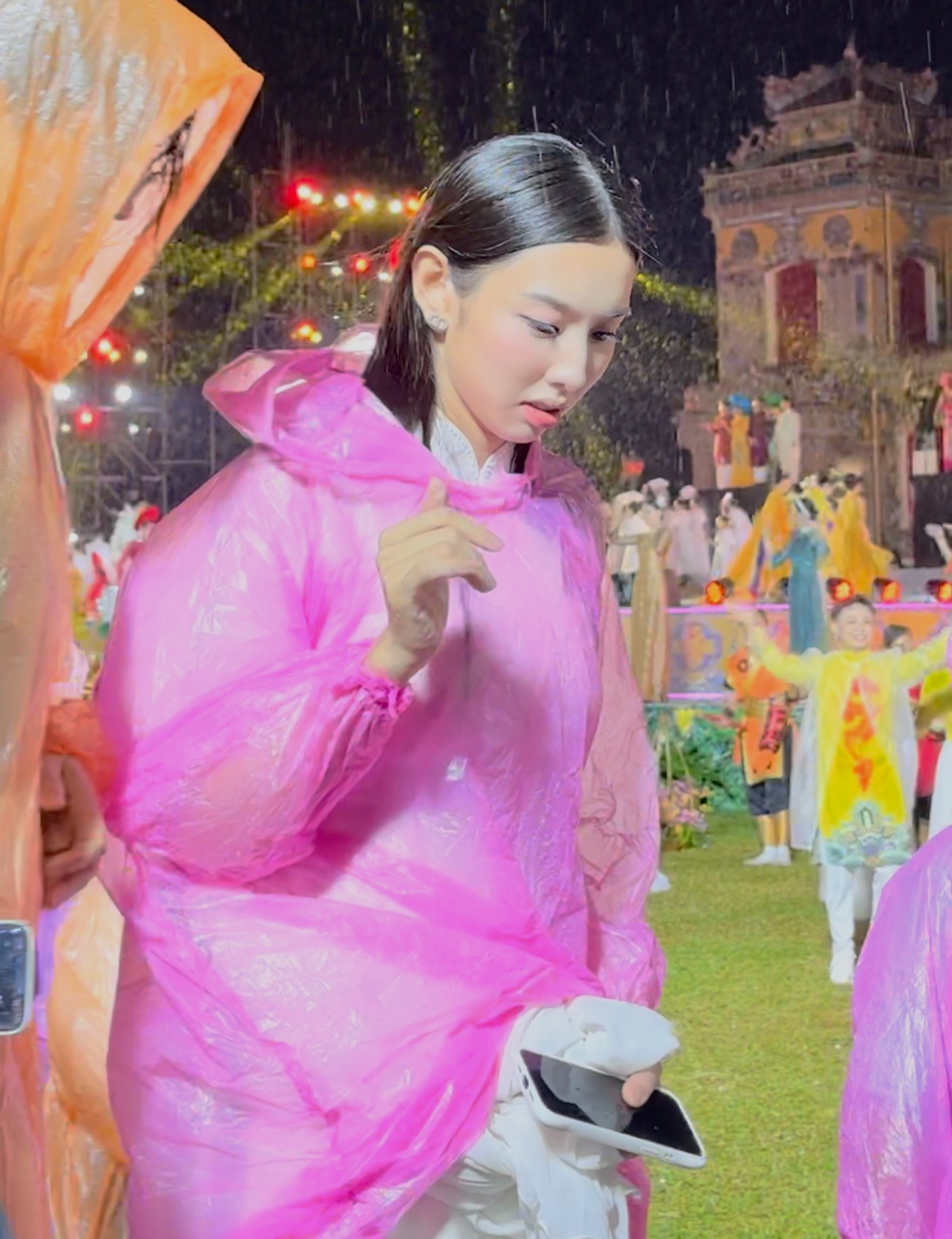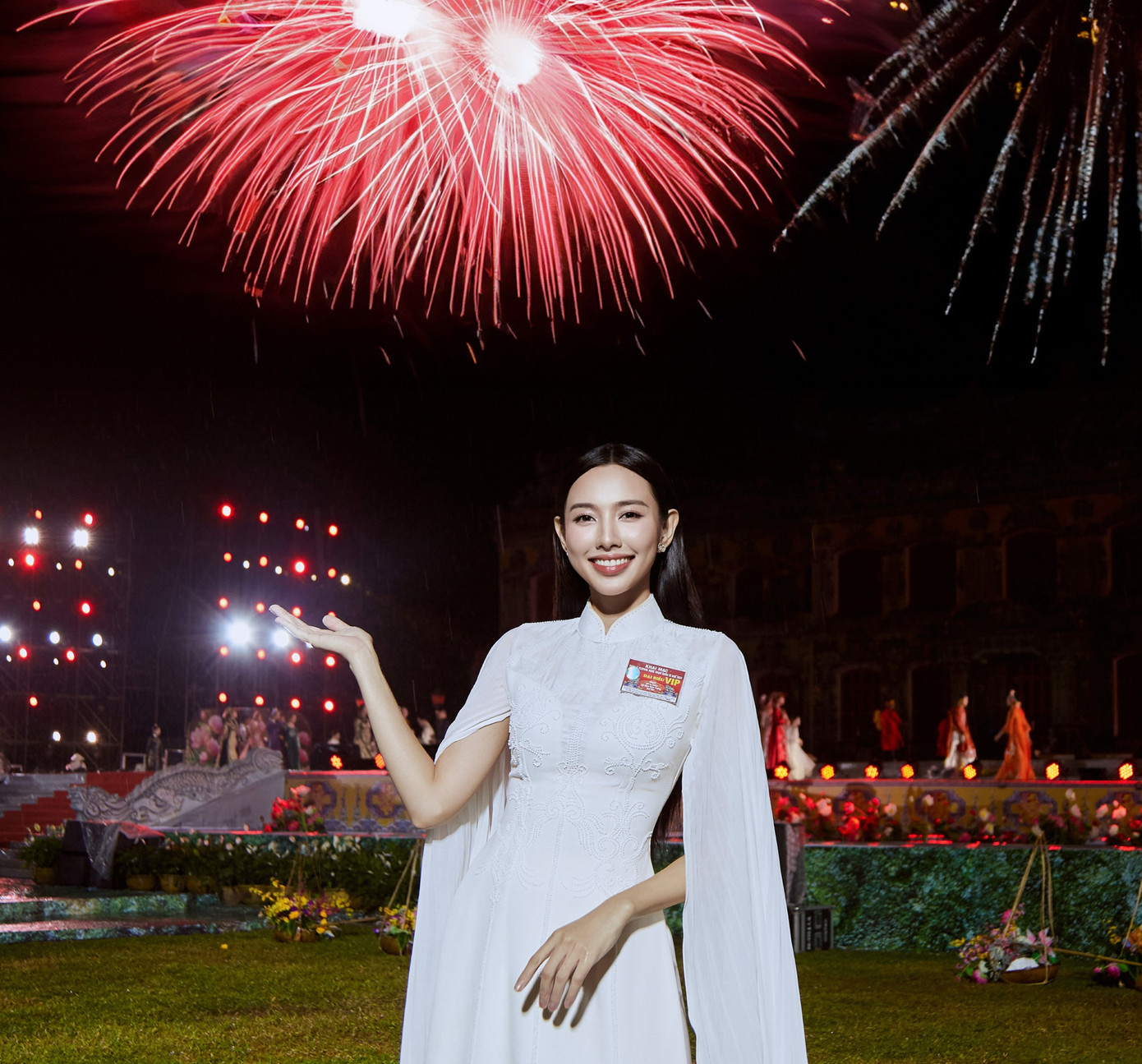 Có mặt tại đây với tư cách là đại biểu, dù trời mưa khá to nhưng Thuỳ Tiên khiến khán giả vô cùng bất ngờ bởi sự xinh đẹp, chỉn chu của mình tại sự kiện. Cô cũng thể hiện sự chuyên nghiệp khi mặc áo mưa và thưởng thức chương trình đến những giây phút cuối cùng.