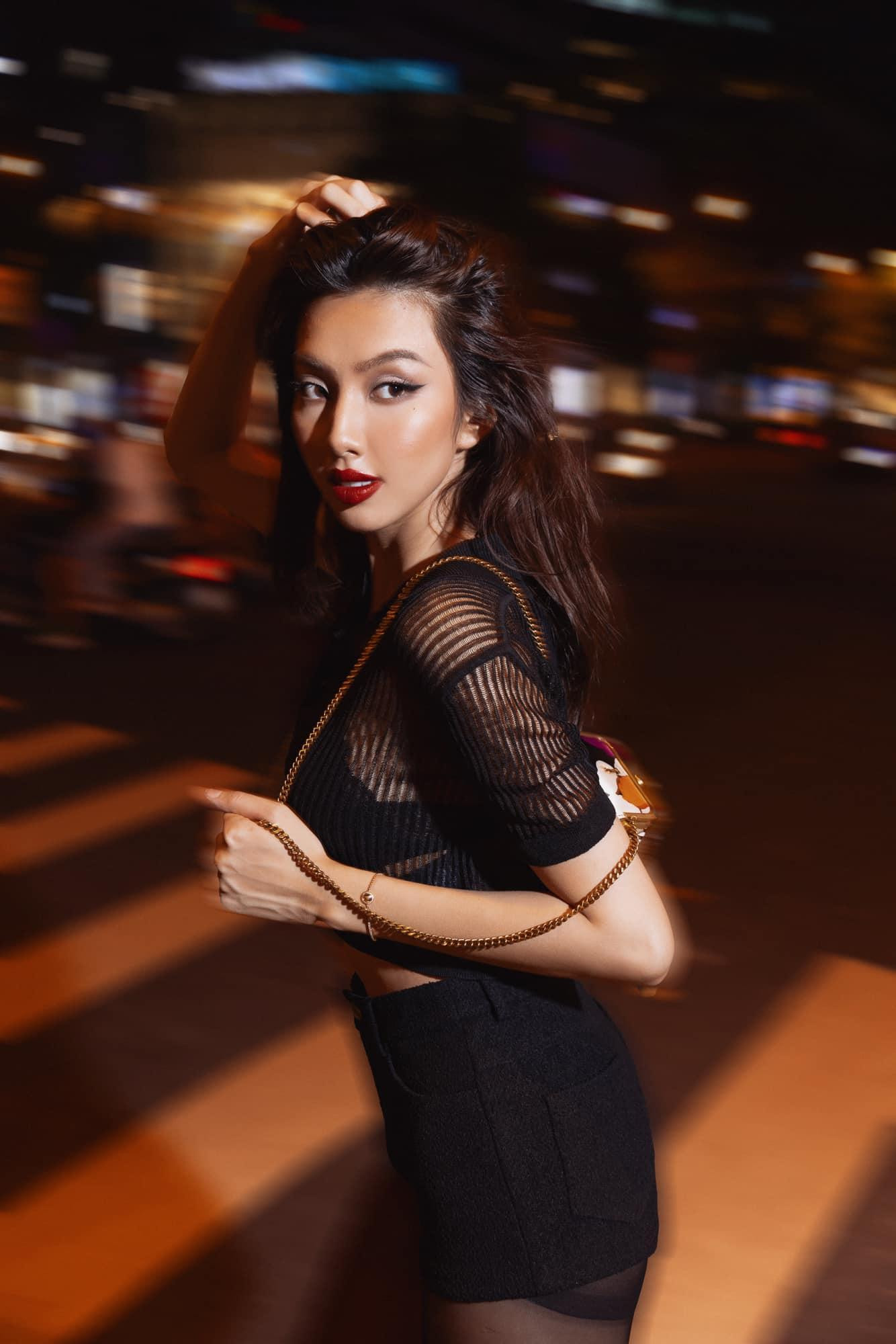 | Thùy Tiên thả dáng cực kỳ chuyên nghiệp và sành điệu trên phố đêm. |