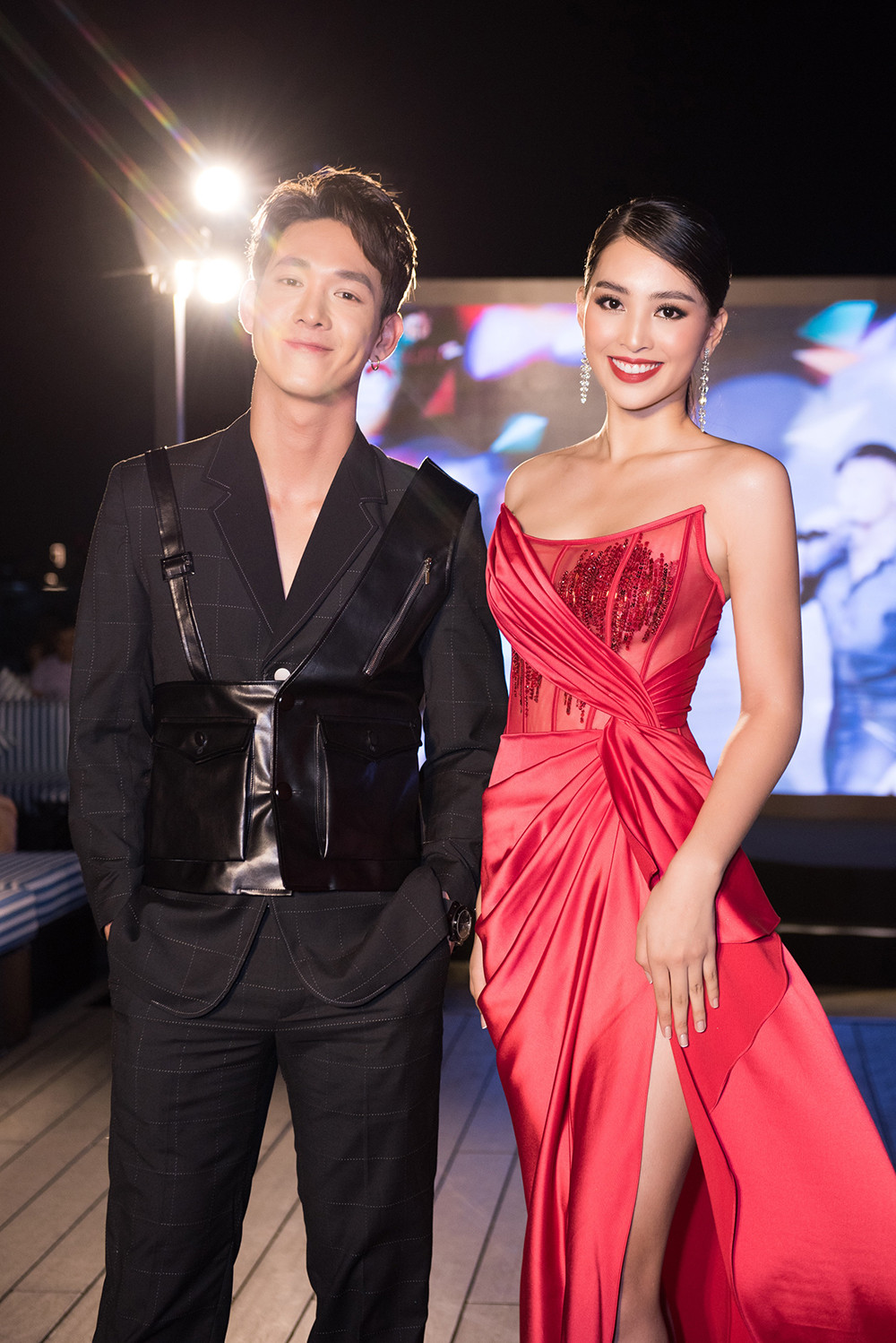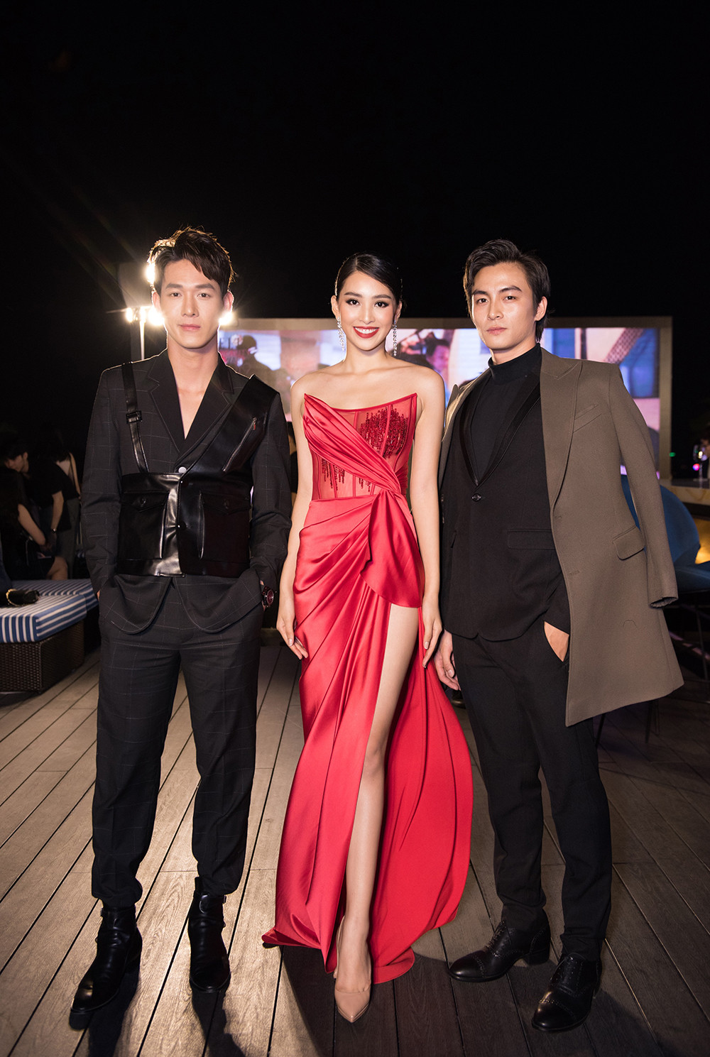 Tại sự kiện, Tiểu Vy có dịp dịp khoe sắc giữa hai trai đẹp Song Luân và Lãnh Thanh.