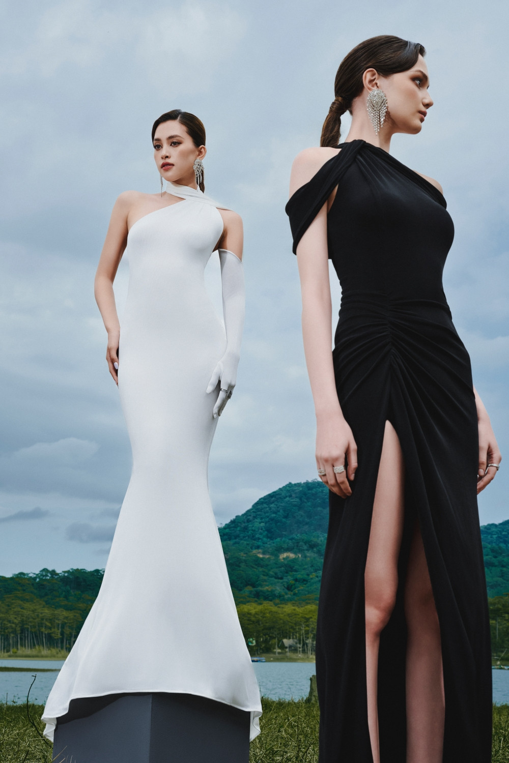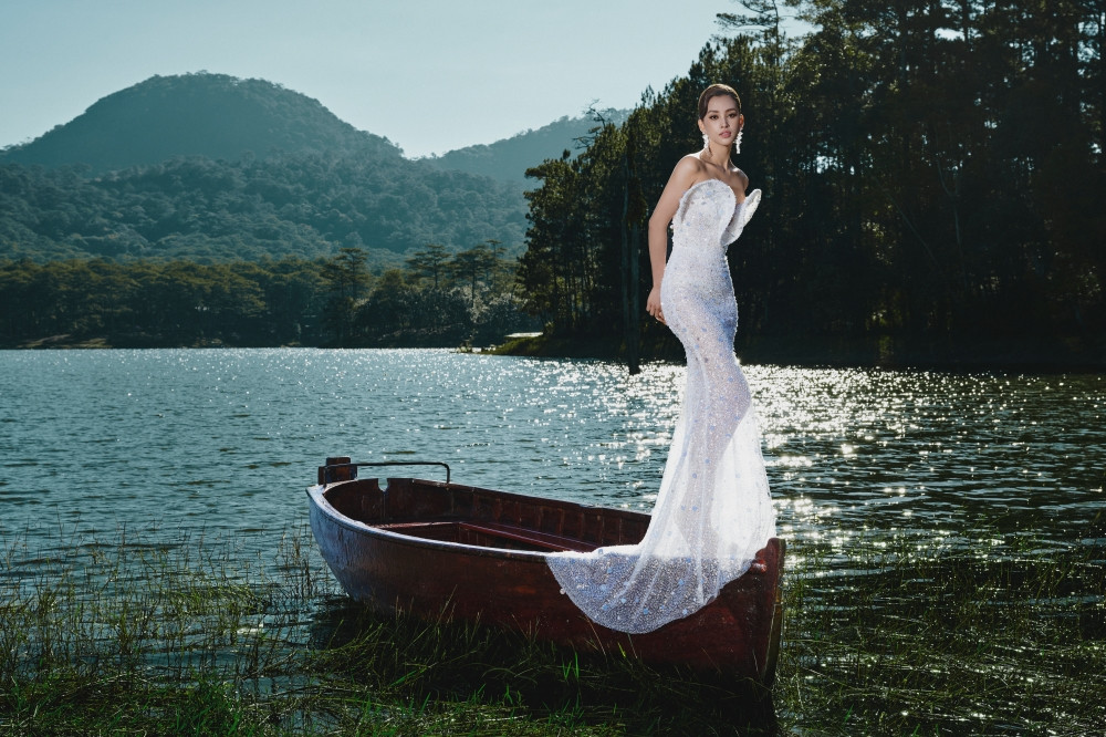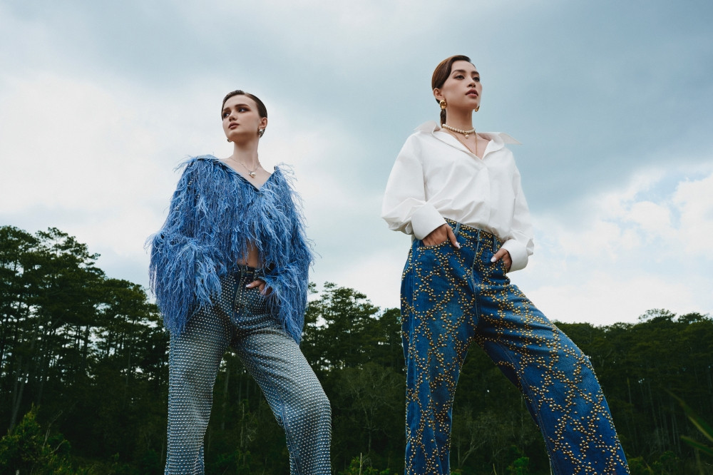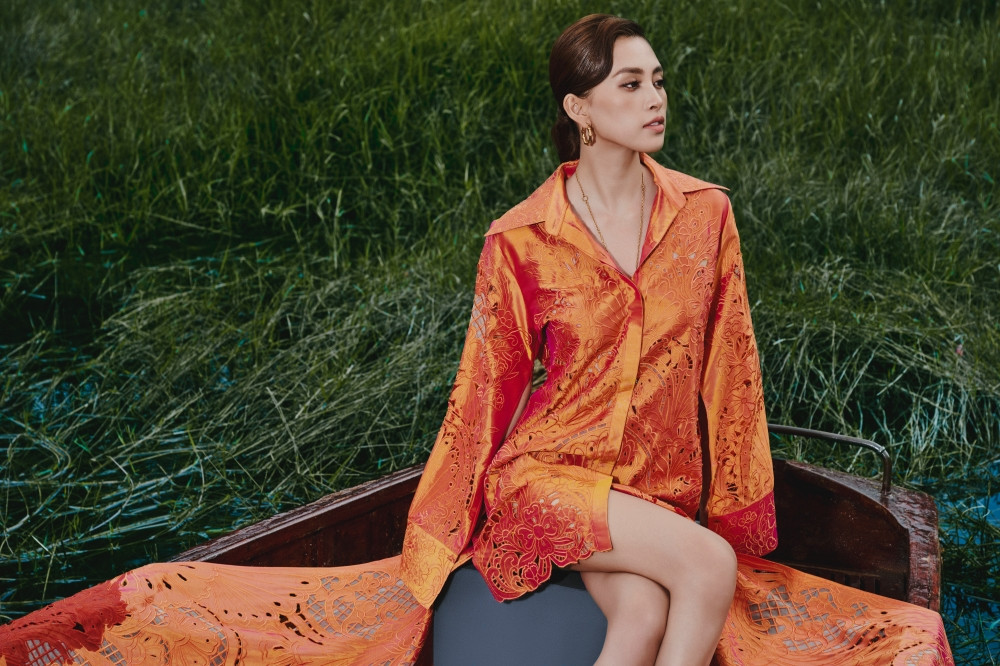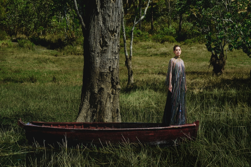 Thiên nhiên như được hòa quyện với vẻ đẹp thời trang và nhan sắc của Hoa hậu Tiểu Vy và người mẫu Ariana. Đây cũng là dụng ý của Lê Thanh Hòa khi các bộ sưu tập gần đây của anh đều được lấy cảm hứng từ thiên nhiên bao la.