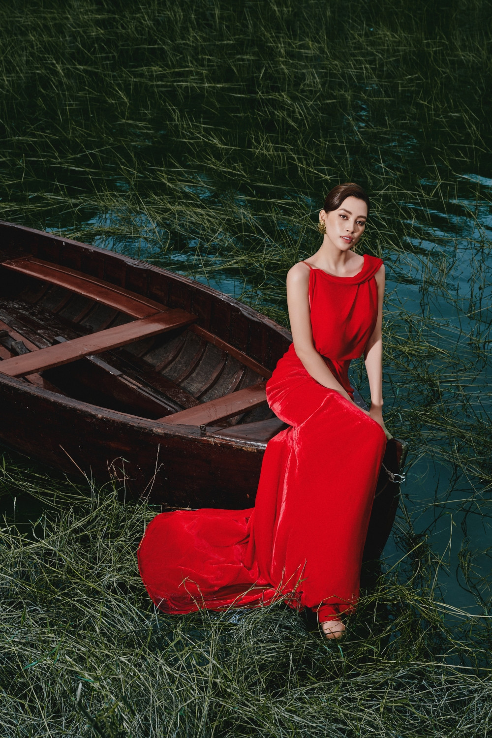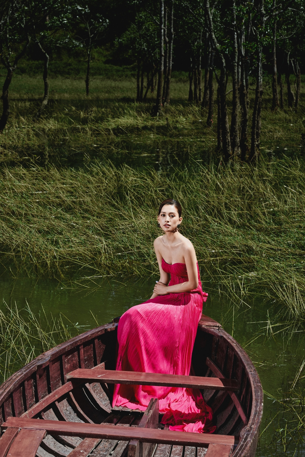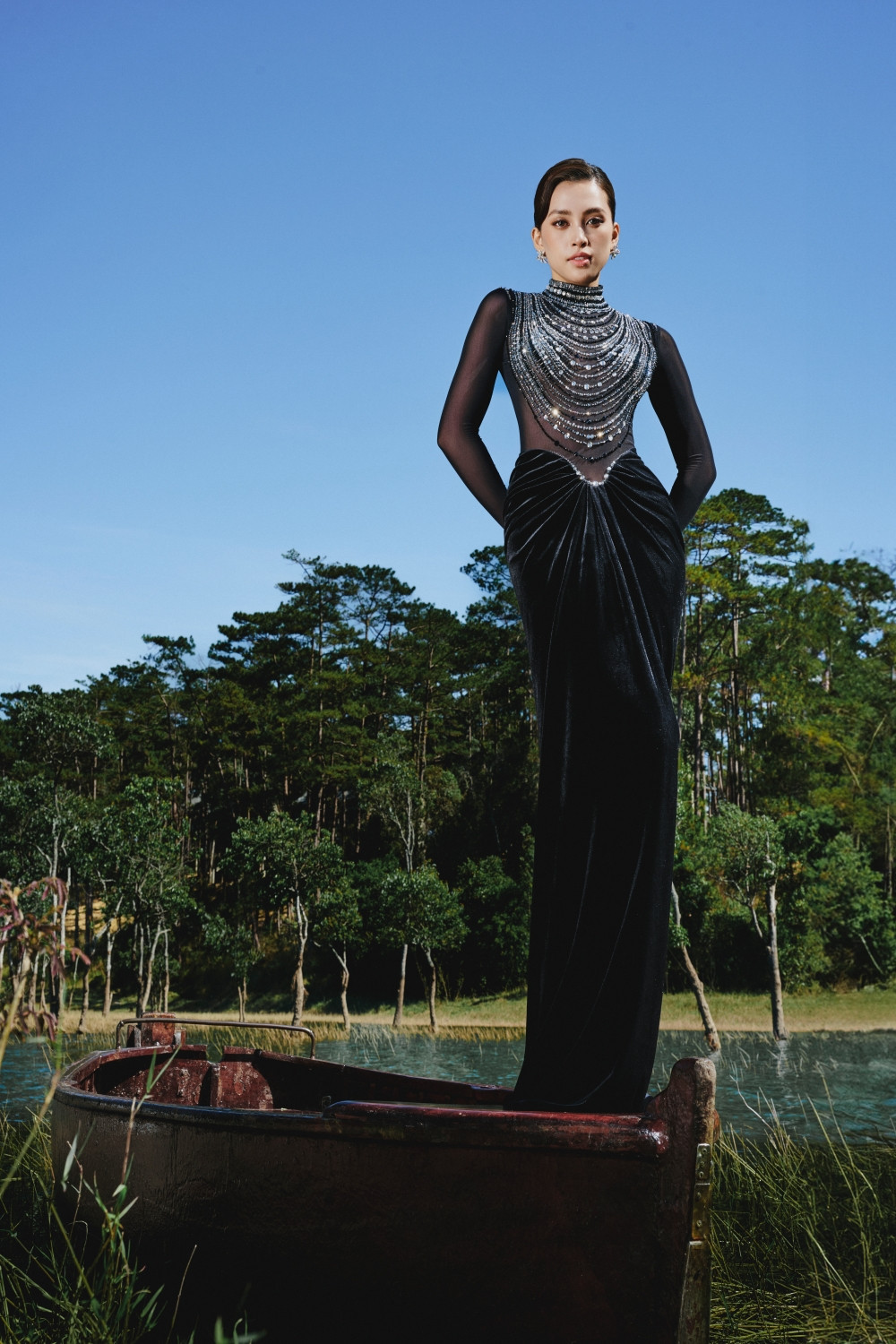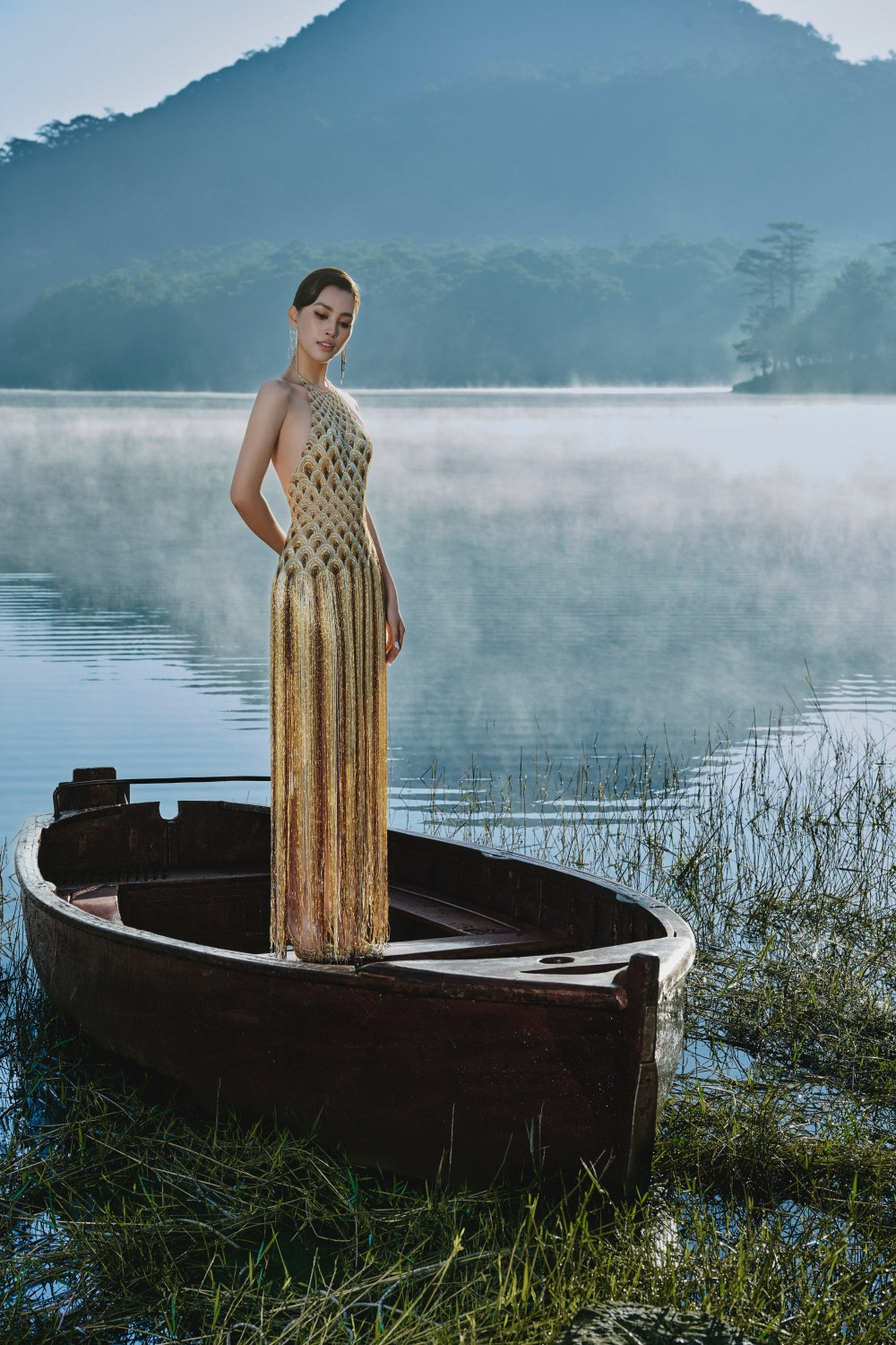 Thiên nhiên như được hòa quyện với vẻ đẹp thời trang và nhan sắc của Hoa hậu Tiểu Vy và người mẫu Ariana. Đây cũng là dụng ý của Lê Thanh Hòa khi các bộ sưu tập gần đây của anh đều được lấy cảm hứng từ thiên nhiên bao la.