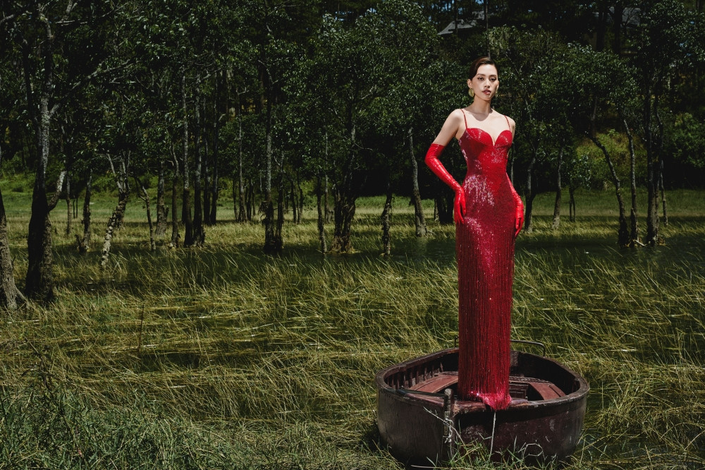Kỹ thuật xếp vải, tạo layer, cùng với các chi tiết bèo nhún, ruffles thời thượng không chỉ tạo nên sự phong phú về mặt hình thái mà còn khắc họa một thế giới diệu kỳ và vô hạn. Sự pha trộn giữa truyền thống và hiện đại trong các thiết kế của NTK Lê Thanh Hòa mang đến một cái nhìn mới mẻ, độc đáo, vừa quen thuộc vừa xa lạ, mời gọi người xem khám phá và cảm nhận.